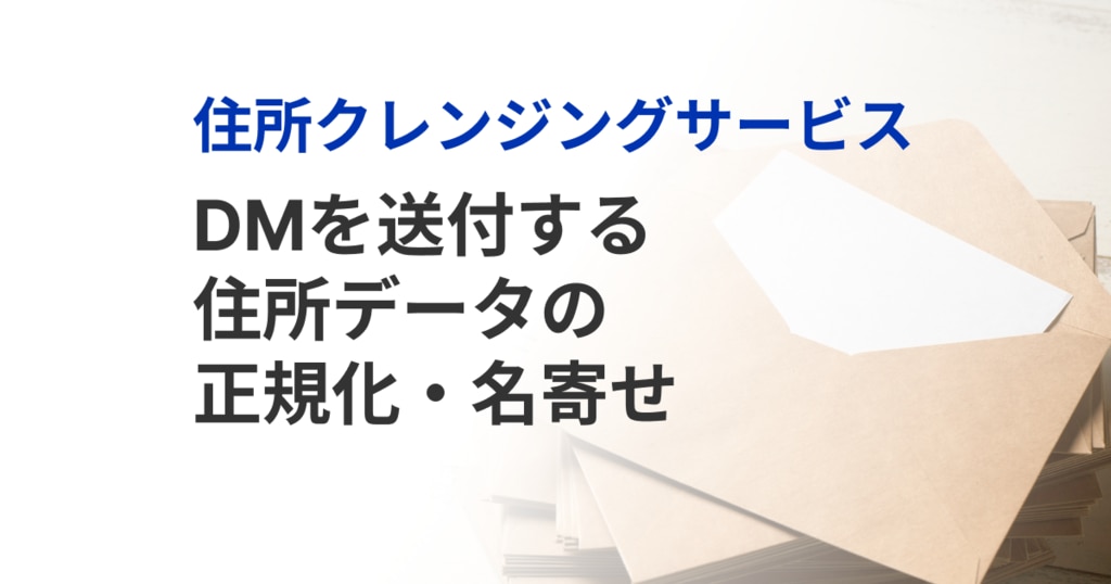 ダイレクトメール配送時における送付先住所の正規化住所クレンジングサービス事例交通・物流・運輸商社・小売・卸売飲食・サービス住所を正規化したいデータ提供2000名以上1-100名101名-2000名顧客や物件情報管理の効率化API2025-09-29 07:13