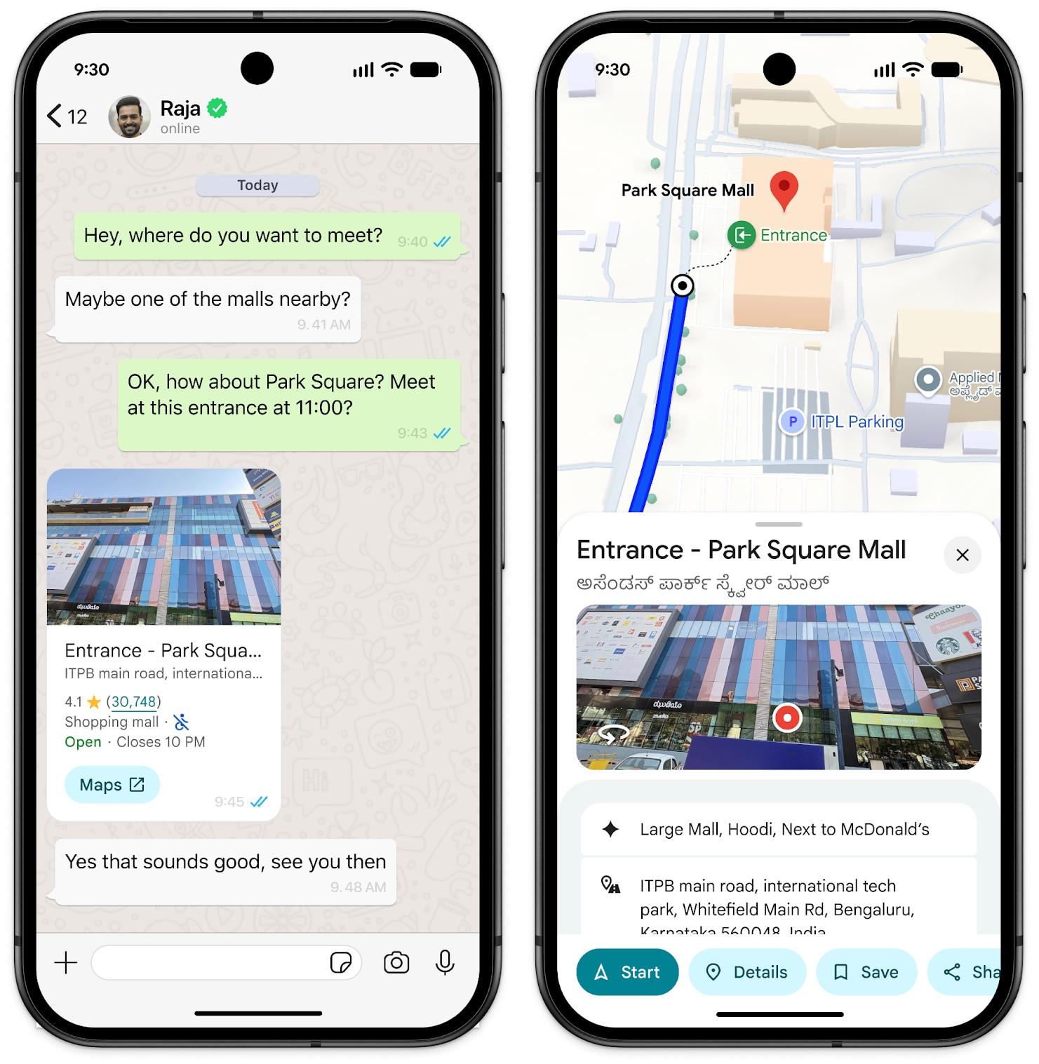 高精度な連携:メッセージアプリで特定の入口を共有すると、Googleマップ上で正確な建物の外形と到着地点が表示されます